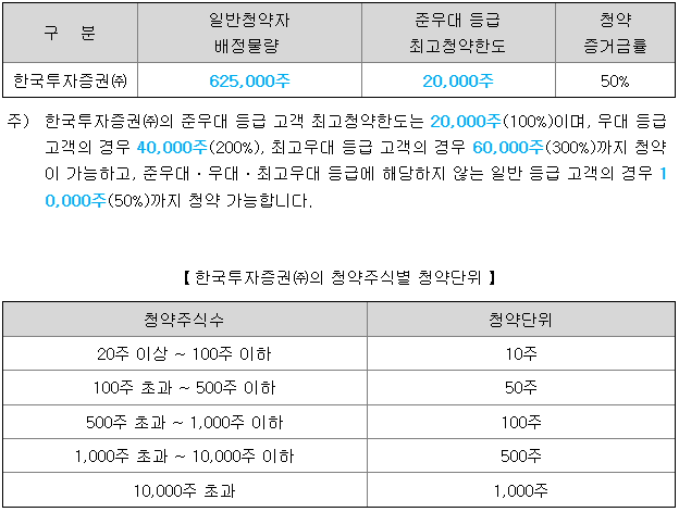 - 청약 가능 증권사 : 한국투자증권