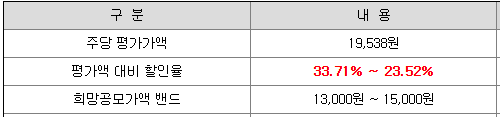 쎄크의 희망 공모가격은 회사의 주당 평가가액 19,538원에서 23.52% ~ 33.71 % 할인한 가격입니다.