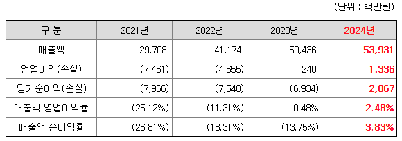 한편 전환사채와 전환상환우선주의 K-IFRS 전환에 따른 파생상품 평가손실로 인해 당기순손실이 발생하고 있으나, 2024년 10월 전환사채 및 전환상환우선주의 보통주 전환이 완료되어 회사에서는 상장 이후 안정적인 당기순이익을 시현할 수 있을 것으로 전망하고 있습니다
