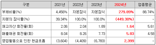 동사는 상환전환우선주와 전환사채의 전환권 등을 부채로 재분류함에 따라 2022년부터 2024년 3분기까지 자본잠식 상태를 기록하였습니다. 하지만 2024년 10월 상환전환우선주와 전환사채가 모두 보통주로 전환이 완료되어 신고서 제출일 현재 관련 부채가 전액 자본으로 전입됨에 따라 자본잠식 상태가 해소되었습니다. 2024년 말 또한 자본잠식이 해소되었습니다.