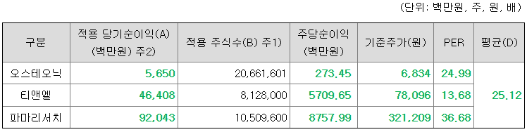 <유사회사의 평균 배수 산정>