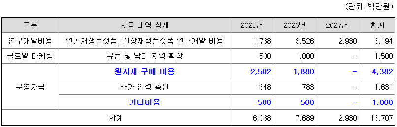 [공모자금 사용계획]