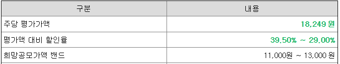 희망 공모가격은 11,000원 ~ 13,000원이고, SK증권과 KB증권에서 청약 가능합니다.