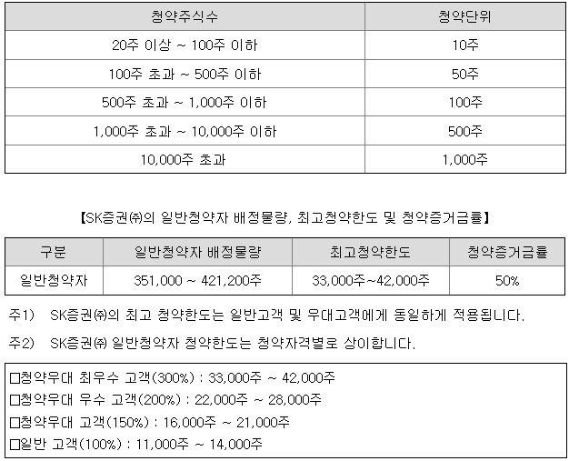 [청약한도 및 청약 단위]