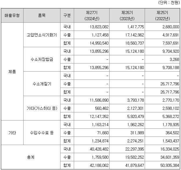 액화상태의 LNG 기화 장치인 고압연소식기화기를 주력 제품으로 하고 있으며, 수소 저장 장치의 비중도 점차 증가하는 추세입니다.