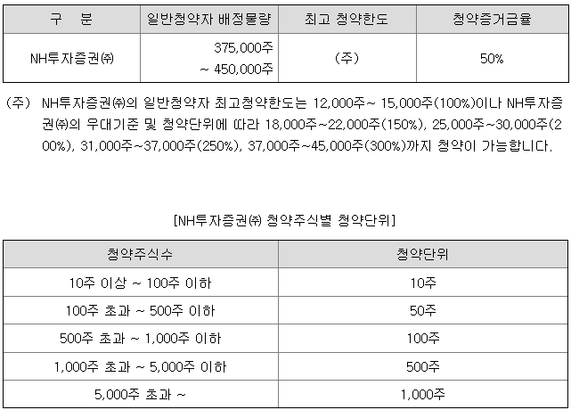 - 청약 가능 증권사 : NH투자증권