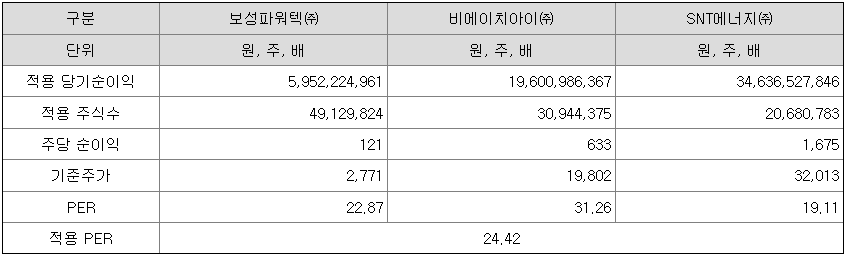 <유사회사의 평균 PER 배수 산정>