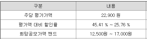 인투셀의 희망 공모가격은 회사의 주당 평가가액 22,900원에서 25.76% ~ 45.41% 할인한 가격입니다.