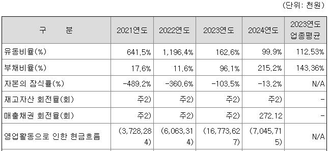 인투셀은 2024년 온기 기준 유동비율 99.9%, 부채비율 215.2%, 2023년말 기준 유동비율 162.6%, 부채비율 96.1%를 기록하였습니다. 2023년 이후 운영자금 및 연구개발비 사용으로 유동자산이 감소하고 유동부채 증가로 유동비율이 일부 낮아졌습니다. 부채비율의 경우 2021년 5월 종류주식 전체에 대한 보통주 전환이 이루어져 부채비율이 개선되었으나, 2023년 운영자금 확보 목적으로 단기차입금 100억원을 도입한 영향으로 부채비율이 다소 상승하였습니다.