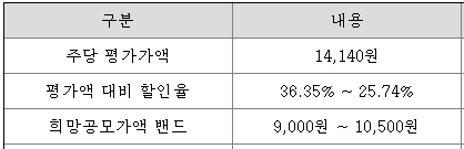 희망 공모가격은 9,000원 ~ 10,500원이고, 삼성증권에서 청약 가능합니다.