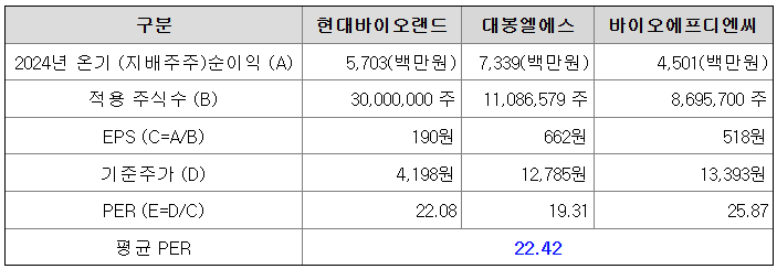 <유사회사의 평균 PER 배수 산정>