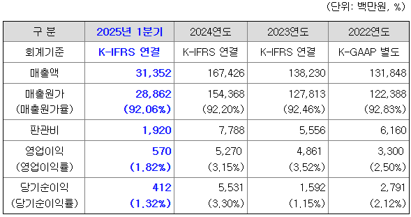 매출 외형에 비해 수익성이 다소 낮아보입니다만, 하이닉스 반도체 파운드리 공정을 이용하는 팹리스 업체들에 대한 시스템반도체 공급을 주력으로 안정적인 매출 기반을 확보하고 있는 것으로 생각됩니다.
