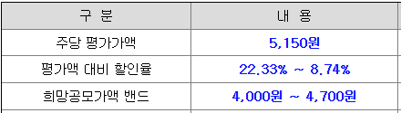 - 공모청약일 : 6월 25일(수) ~ 6월 26일(목)