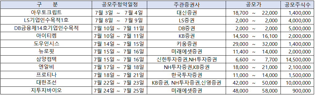 [ 2025년 7월 공모주 청약 일정 종합 ]