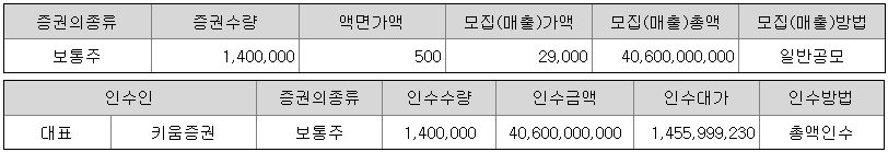 도우인시스의 금번 공모 주식 수는 일백사십만주 (1,400,000주)이고, 액면가 500원에 희망 공모가격은 29,000원에서 32,000원까지입니다.