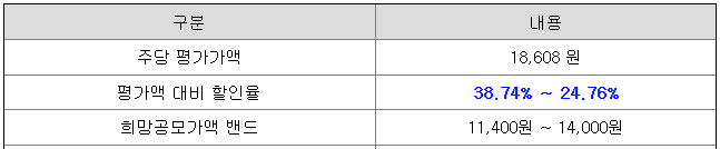 뉴로핏의 희망 공모가격은 회사의 주당 평가가액 18,608원에서 24.76% ~ 38.74% 할인한 가격입니다.