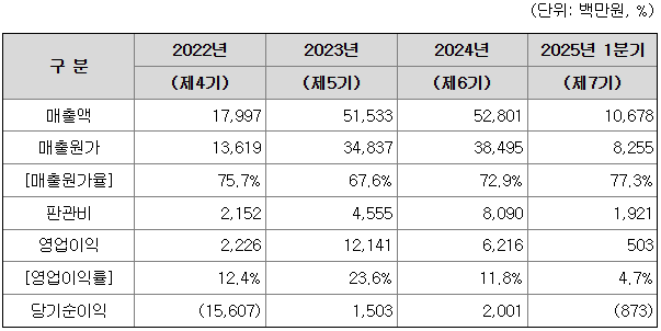10% 이상의 영업이익률을 보이다가 2025년 1분기 현재 영업이익률이 떨어진 것이 옥에 티로 보입니다.