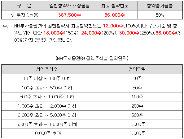 - 청약 가능 증권사 : NH투자증권, KB증권