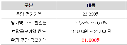 당초 희망 공모가격 상단으로 결정된 것입니다.