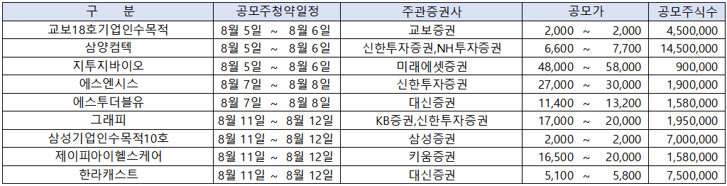[ 2025년 8월 공모주 청약 일정 종합 ]
