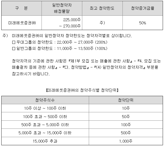 [청약한도 및 청약 단위]