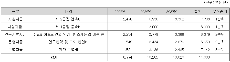 [공모자금 사용계획]