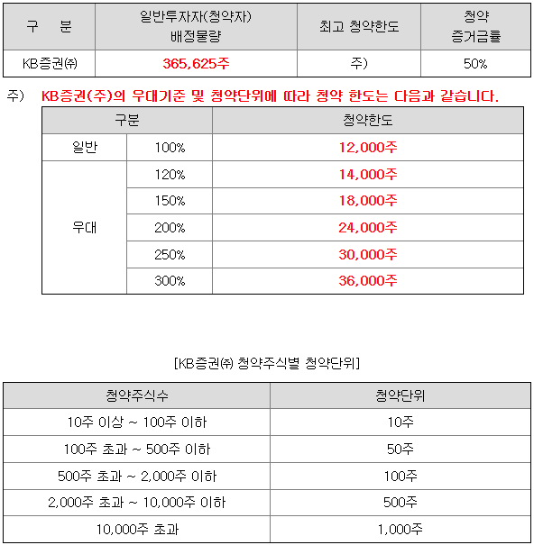 - 청약 가능 증권사 : KB증권, 신한투자증권