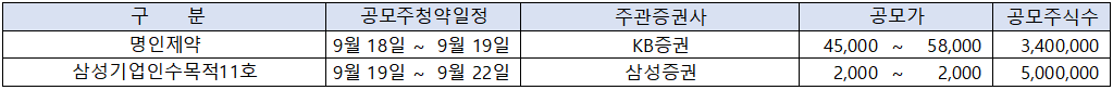 | 명인제약 상장 ipo 공모주 청약 정보 (1) | 2025.09.04 |