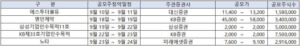 [ 2025년 9월 공모주 청약 일정 종합 ]