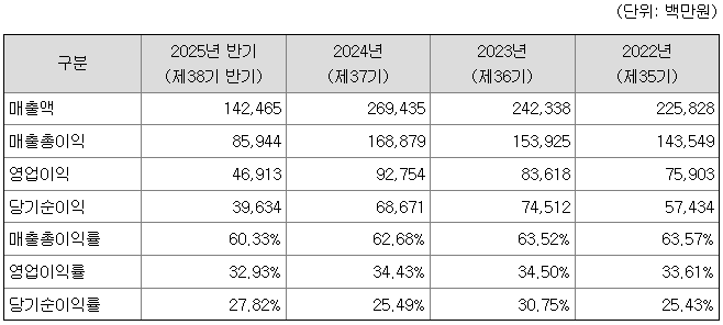 동사의 재무안정성 지표인 부채비율은 2022년 11.22%, 2023년 10.43%, 2024년 9.38%, 2025년 반기 8.89%로 지속적으로 낮아지고 있으며 동종업계 평균 수준을 크게 하회하고 있습니다.