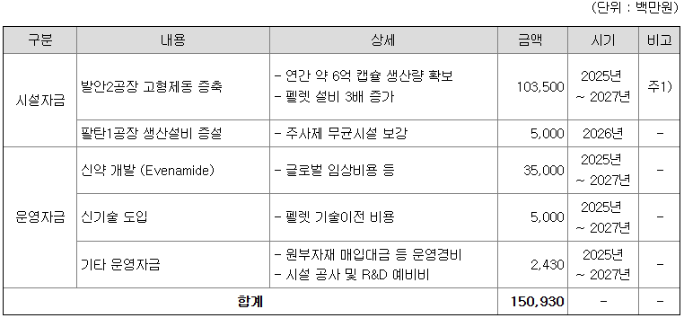 [공모자금 사용계획]