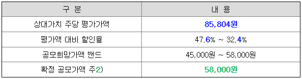 당초 희망 공모가격 상단으로 결정된 것입니다.