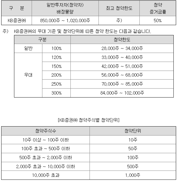 - 청약 가능 증권사 : KB증권