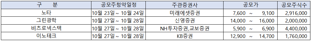 | 노타 상장 ipo 공모주 청약 정보 (0) | 2025.10.18 |