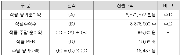 <주당 평가가액>