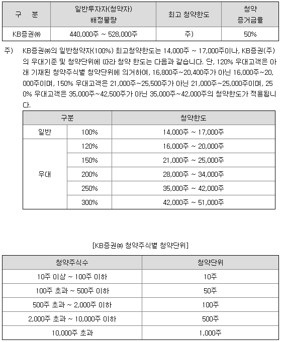- 청약 가능 증권사 : KB증권