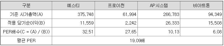 <유사회사의 평균 PER 배수 산정>
