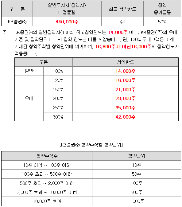 - 청약 가능 증권사 : KB증권
