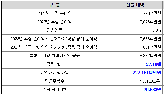 2027년과 2028년의 추정 순이익을 바탕으로 희망 공모가를 산정하였는데, 이에대한 시장의 신뢰 확보 여부가 중요해 보입니다.