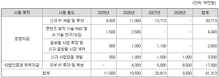 [공모자금 사용계획]