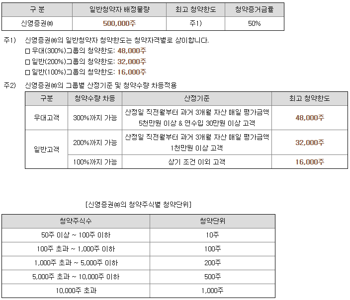 - 청약 가능 증권사 : 신영증권