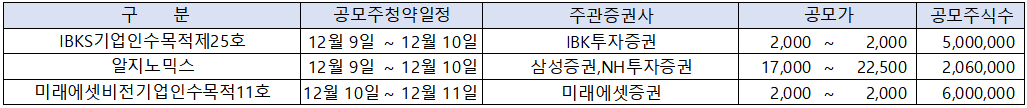 [ 2025년 12월 공모주 청약 일정 종합 ]