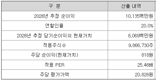 아직 매출과 수익성이 안정적이지 못한 상태에서 2026년 추정 순이익을 바탕으로 희망 공모가를 산정하여 이에 대한 시장의 신뢰 확보 여부가 중요하다고 하겠습니다.