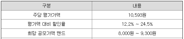 - 공모청약일 : 12월 3일(수) ~ 12월 4일(목)