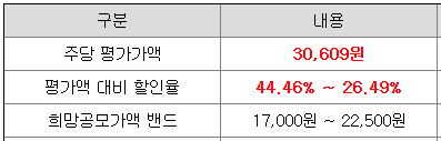 희망 공모가격은 17,000원 ~ 22,500원이고, 삼성증권과 NH투자증권에서 청약 가능합니다.