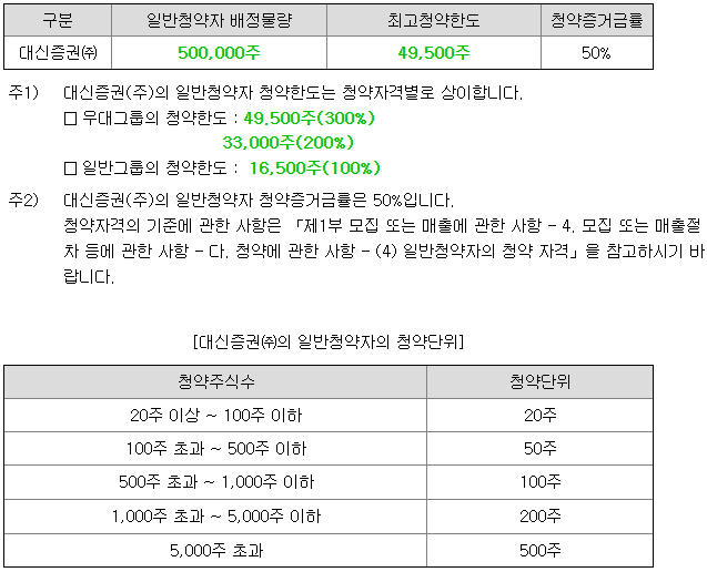- 청약 가능 증권사 : 대신증권