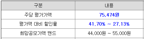 희망 공모가격은 44,000원 ~ 55,000원이고, 삼성증권과 미래에셋증권에서 청약 가능합니다.