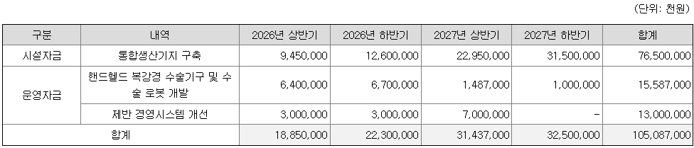 [공모자금 사용계획]