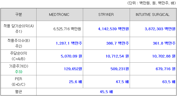 <유사회사의 평균 PER 배수 산정>