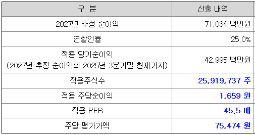 하지만 300억 이상의 매출을 시현한 2025년 현재 기준 영업이익도 적자인 실적이 단점으로 보이는 한편, 2027년 추정 순이익을 바탕으로 희망 공모가를 산정하였는데, 이에 대한 시장의 신뢰 확보 여부가 중요해 보입니다.
